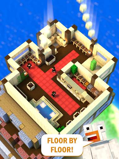 This is a really wonderful game. It will give you a chance to build the most fascinating skyscraper under the sun. It is a really fun game. So it is definitely worthwhile for you to have a try. It feels so good to add to the first floor. The background music is also special. It gives a totally different flavor to this game. You may want to say that there is no way for you to build a house, let alone a great skyscraper since you have no experience in building. But it is a rather easy task for you to build a skyscraper in this game. At first, you will find that the bricks are falling down one by one in a very slow speed. But if you keep tapping on the screen with your finger, you will find that all of the bricks are dropping down all of a sudden. And in a blink of an eye, the first floor is finished. You will even find some cute figures who are helping you in the first floor when you finished your work. And you can build the second floor by following the same way. Actually, it is a very beautiful thing to watch these bricks of different colors falling down one by one. But if you are in a hurry, or if you want to try something exciting, you can speed up by keeping tapping. And the most amazing thing is that while you are tapping on the screen, you will also see a lot of gold coins drop down. And the thing you should know is that you can upgrade the level of the floor in order to get more profits. Although the floor and even the whole skyscraper are built automatically, you will find a kind of distinctive beauty through the distinctive combination of these bricks and the designing of the facade of the building. Each detail is perfect. You will be amazed at the beauty of this skyscraper. And you will find a totally different kind of beauty when you are watching the skyscraper from the above, because it is located over the ocean. It is just like a miracle. And the interior structure of the building is also amazing, especially the interior decoration. You will find that this skyscraper is not just something composed of lifeless cement and stones. Actually inside this skyscraper, you will find many little cute figures and small compartments decorated with antique wooden chairs and many of exquisite artifacts. You will even find some chests containing gold coins in a certain compartment. But it is not easy to find such hidden chest. So you must be careful while you are building a skyscraper. So as you can see, technically speaking, this is a very simple game. It is suitable for anybody to have some fun in this building world. If you are patient enough, you will become a building master. You will have the chance to let your skyscraper shoot into the sky or even to the Mars or to the space. And you will also have the experience to upgrade your skyscraper and manage the cash you made from building work. It also allows you enough space to design each floor of your own skyscraper in your own way. At last, you will definitely fall in love with the 3D graphics of this game. So when you have nothing else to do and when you just want to relax yourself by playing a not brain-racking game, this will be the perfect game for you to kill your spare time. There is no way for you to get bored with it, even if sometimes it is a little bit repetitive. It feels so good to watch your own skyscraper growing into the sky bit by bit. Everything gives you a deep sense of satisfaction. You just want to challenge your extreme. And the higher your skyscraper, the higher your score. So it is time for you to put everything else aside and start your building work. You must believe that you can design the most distinctive skyscraper in this world.